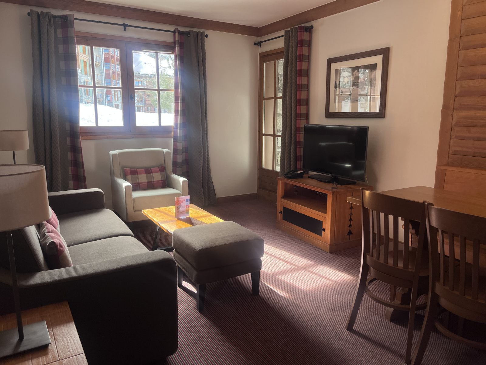 Mairie les Arcs (73700)Situé dans la résidence Auberge Jerome, appartement confortable avec vue sur les pistes, comprenant : une entrée avec rangements, salon avec cuisine ouverte, une chambre, salle de bains, wc indépendant.